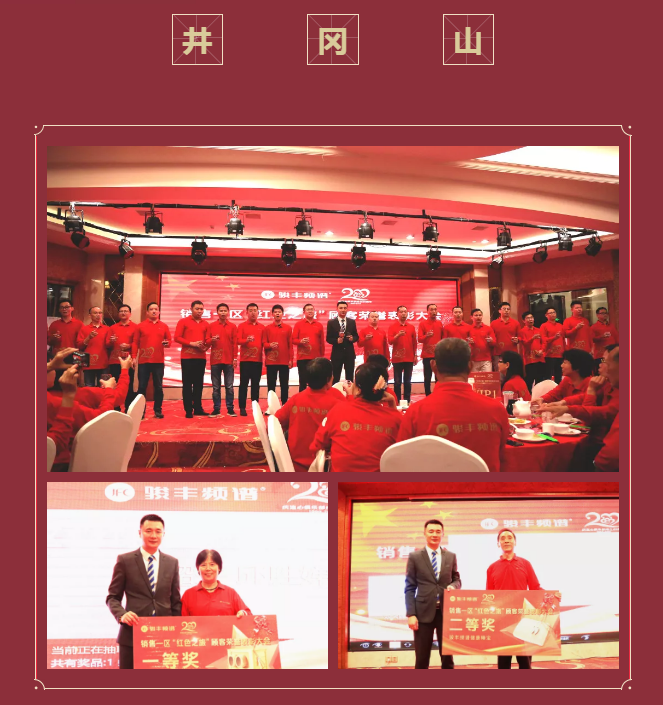 此次活动相聚革命摇篮,特邀毛主席特效演员前来演讲,重现当年黄洋界保卫战的听觉盛宴。盛世来之不易,骏丰三十载也如新中国曾历经风雨,时至今日,顾客亲人的相守相伴,一直是骏丰信心的源泉和不断前行的动力!感恩同行,同心回馈,紧接着,销售一区第18届表彰大会启动仪式正式开启,来自不同经营部的17名顾客亲人代表为我们回顾了过去17载健康大使表彰大会开幕地,主持人向在场的各位述说当时的热闹。灯影聚焦,总监张献博与3位顾客亲人代表一起为大家揭示第18届健康大使表彰大会举办地点——云南昆明。随即特邀顾客亲人代表广州公司张兰和韶关公司杨斌,为大家讲述她们过往参与健康大使表彰大会的感受,现场气氛高涨,大家对即将到来的表彰大会充满了期待。