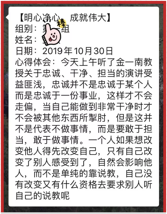人生的重大秘密是心中拥有无尽的宝藏,人生的重大真理是行为作用与反作用,人生的重大战略是建设自己的心灵品质,人生的重大价值是帮助他人实现心灵品质的提升!才过去短暂的4天,我们的心灵仿佛被唤醒,很多学员写下了自己的感悟: