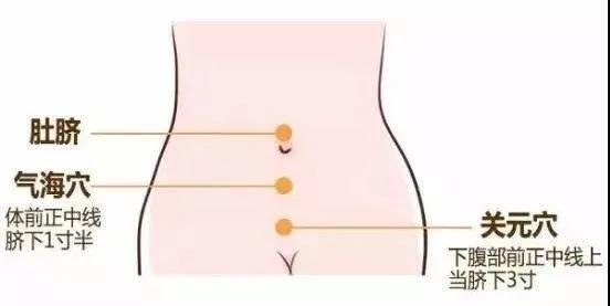 气海穴:位于下腹部体前正中线,脐下1.5寸。