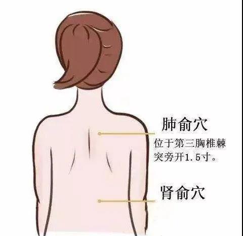 肺俞穴:位于背部,当第3胸椎棘突下,旁开1.5寸。